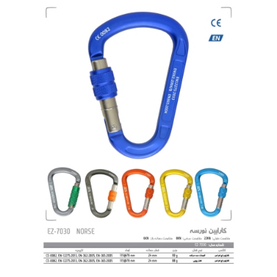 توان: کارابین EZ-7030 دارای توان تحمل 22 کیلونیوتن (KN) است. 22 کیلونیوتن معادل تقریباً 2200 کیلوگرم است که برای اکثر کاربردهای صعود، فرود، و کار در ارتفاع کاملاً کافی و ایمن محسوب میشود.
