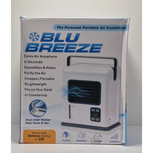 کولر آبی رومیزی باتری خور Blue Breeze یک دستگاه سرمایشی پرتابل است که از فناوری خنککننده تبخیری (Evaporative Cooling) استفاده میکند. این کولر با بهرهگیری از مخزن آب و فن قدرتمند، هوای گرم را از طریق فیلتر مرطوب خنک کرده و باد خنکی را به محیط اطراف منتشر میکند.